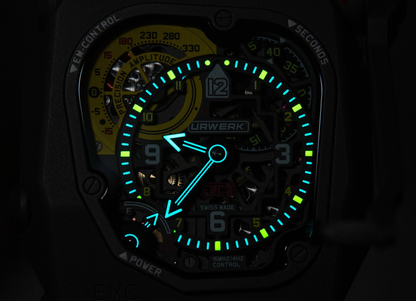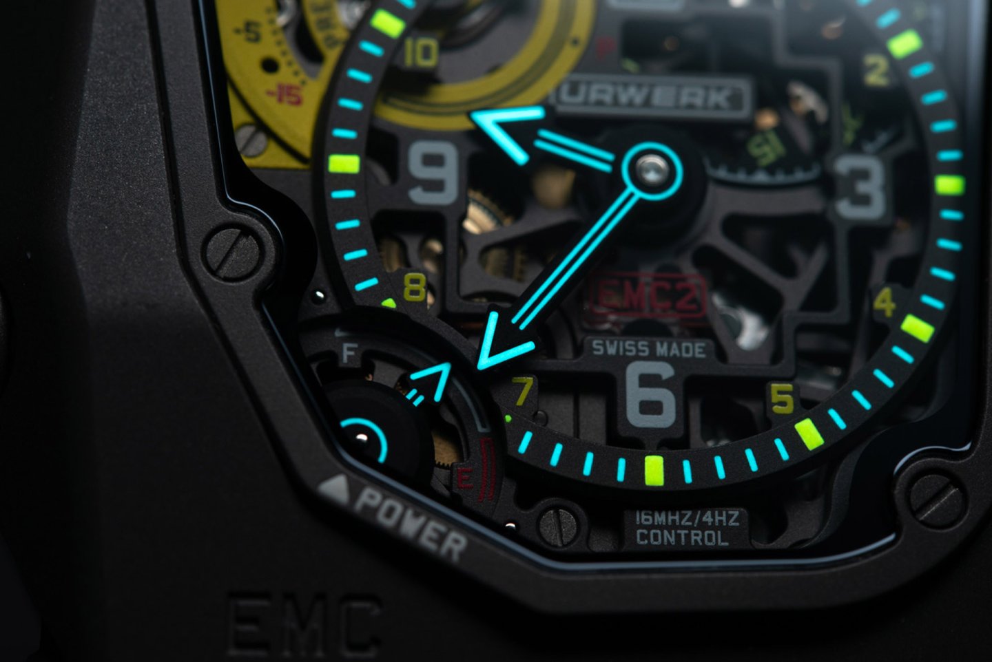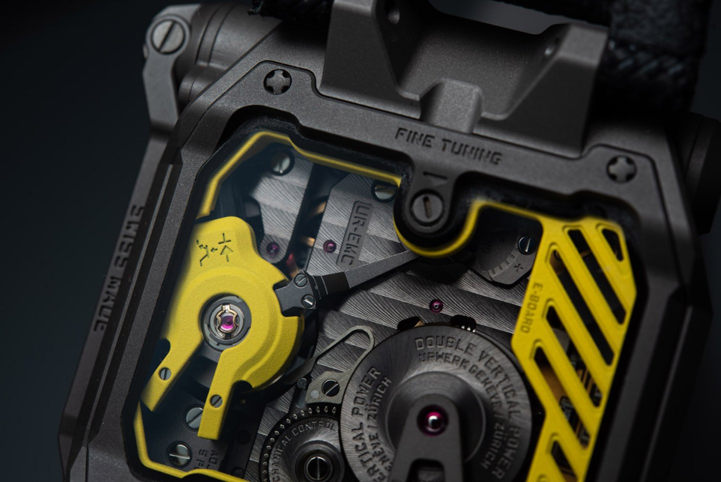 EMC is a fully 100% mechanical watch. The calibre was conceived, developed, crafted and calibrated in the URWERK ateliers.
