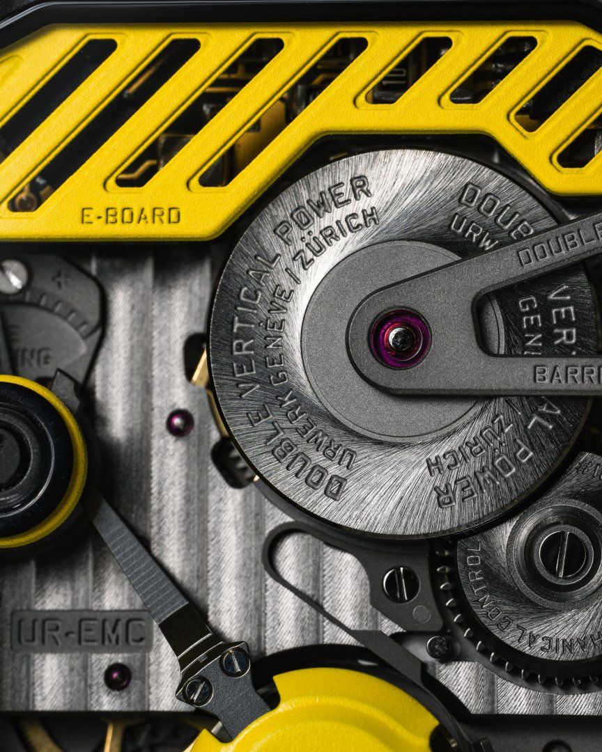 EMC is a fully 100% mechanical watch. The calibre was conceived, developed, crafted and calibrated in the URWERK ateliers.