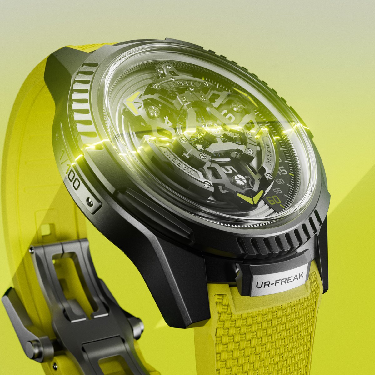 The UR-FREAK revisits Ulysse Nardin’s legendary Freak through URWERK’s uncompromising lens. A mechanical dialogue where two independent forces of Swiss watchmaking converge to create a singular vision.